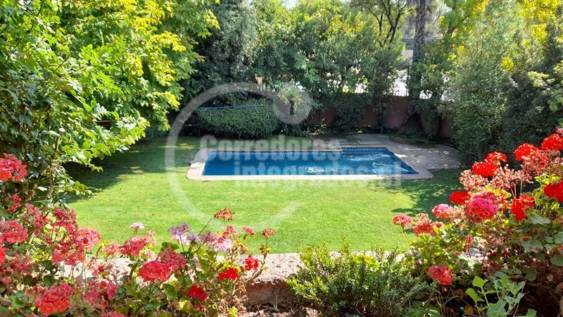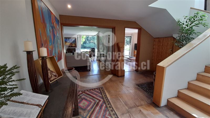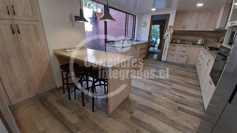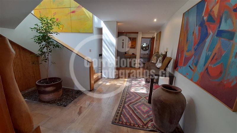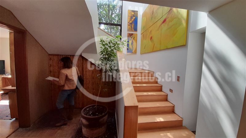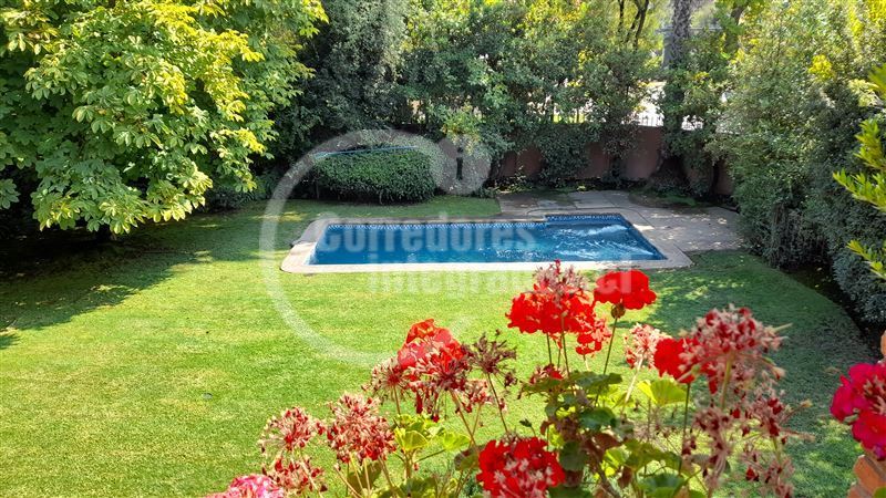 Excelente casa estilo mediterráneo,grandes espacios,maravilloso terreno,orientación nor oriente, toda la casa de hormigón. Hall de entrada doble altura, amplio y piso piedra huasco,grandes recibos(piso madera) separados con vista al jardin y salida a terrazas, 4 dormitorios en el 2do piso( principal en suite con w.closet y terraza), 2 estar, 5 baños (1 visita),casi todos remodelados, cocina amoblada y equipada con comedor de diario full, recién remodelada(cubiertas de cuarzo y piso porcelanato),lavadero amoblado,servicios y pieza de planchado,bodega y patio de servicios,calefacción por losa, portón automático,4 a 5 estacionamientos,lindo jardin, piscina y 3 zonas de estar. Ventanas termo panel, Cercano al Colegio Wenlock y buena conectividad.