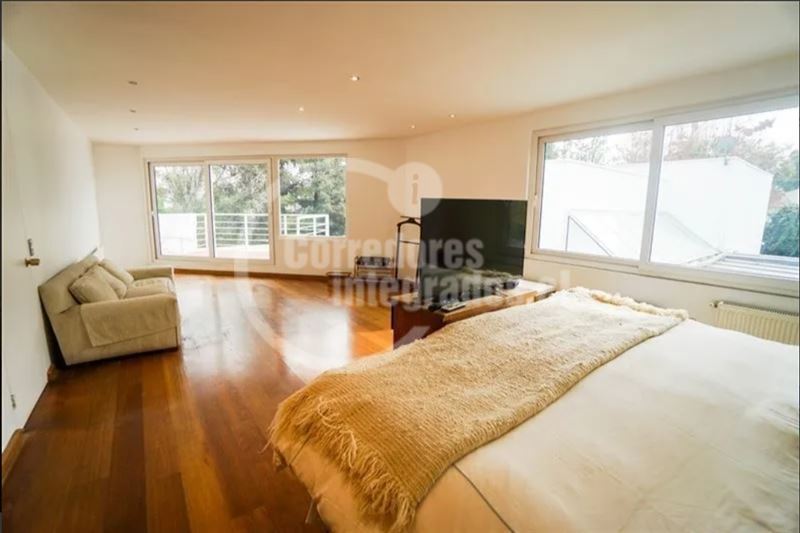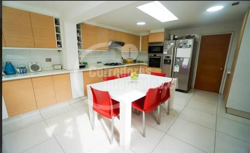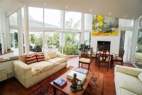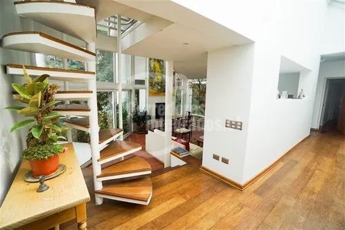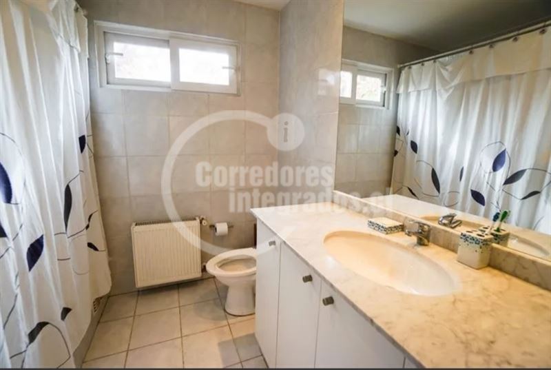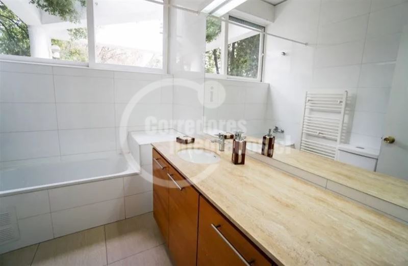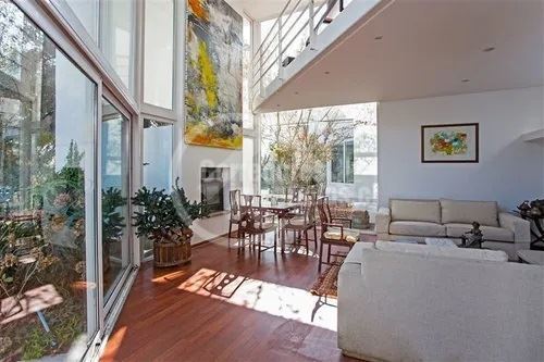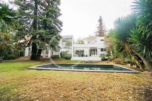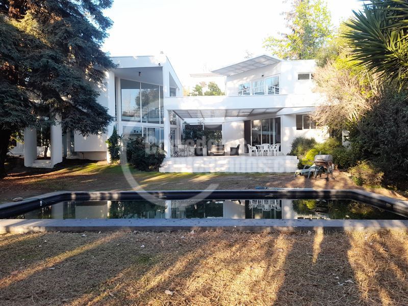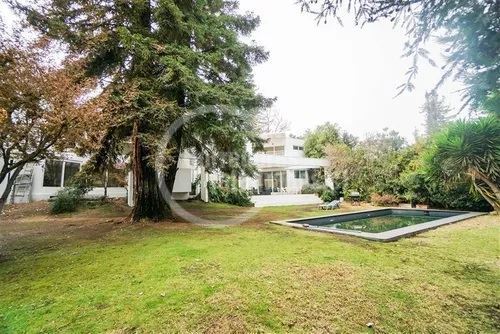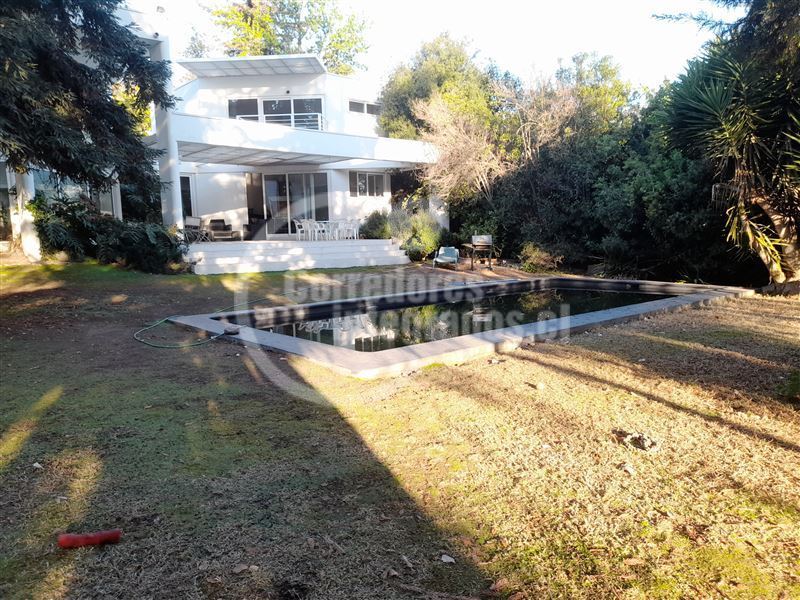 Casa con gran terreno estilo mediterránea en calle tranquila en exclusivo sector privado de Los Dominicos, privacidad,seguridad y luminosa (orientación nor oriente), de arquitectura muy moderna y distribución muy sectorizada para respetar los espacios de la familia.Hall de entrada grande y doble altura, recibos separados en desnivel con salida a terraza( living con salida a gran terraza techada y vista al jardin y comedor con salida a un patio interior con jardineras), 3 salas de estar ( 1 en el 2do piso y 2 en primer piso), 5 dormitorios (principal en suite muy espaciosa con w.closet en 2do piso y con salida a terraza)4 baños, amplia cocina amoblada y equipada con comedor de diario (muchas ventanas y lucarnas), servicios, loggia,ventanas termopanel,calefaccion por radiador a parafina, y caldera a gas, gran jardin, piscina (10 x 5 metros), 4 estacionamientos, alarma y cámaras monitoreadas en la cuadra ,ademas caseta de guardia a pocos metros.