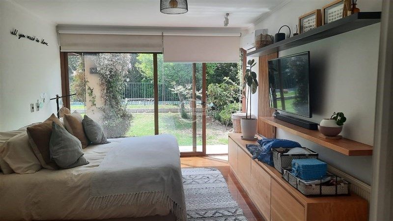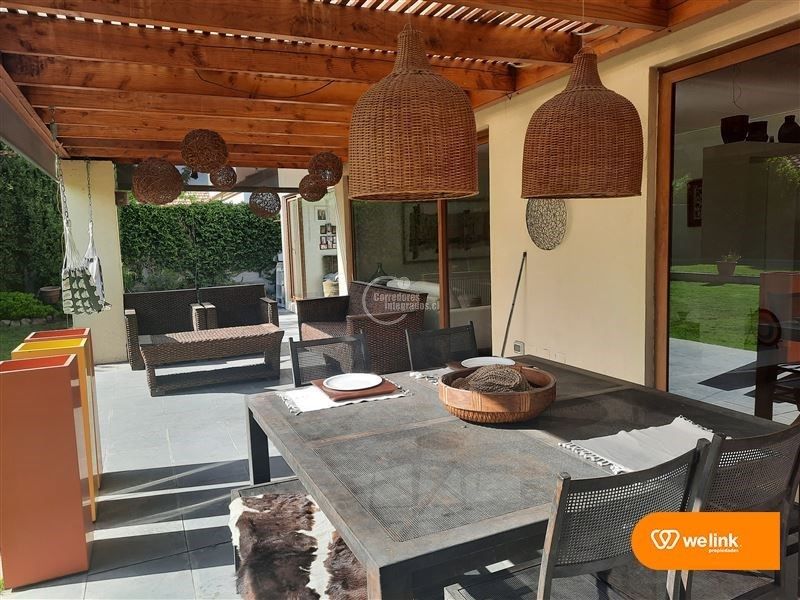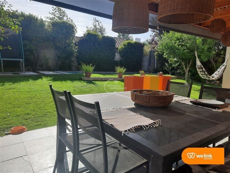 Estacionamiento para 2 vehículos, jardín formado con riego automático, terraza con pérgola, amplia piscina, patio de servicio cerrado.