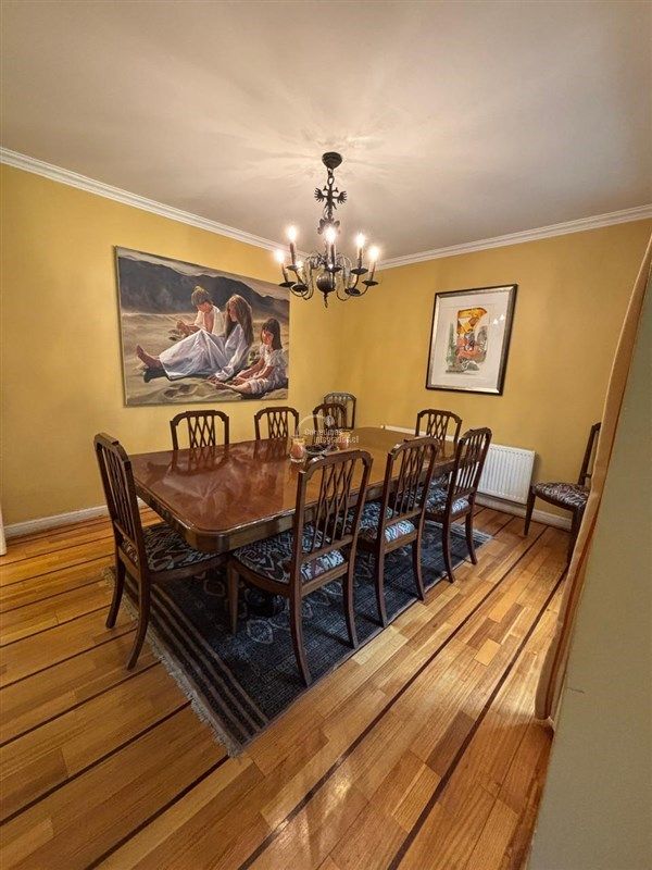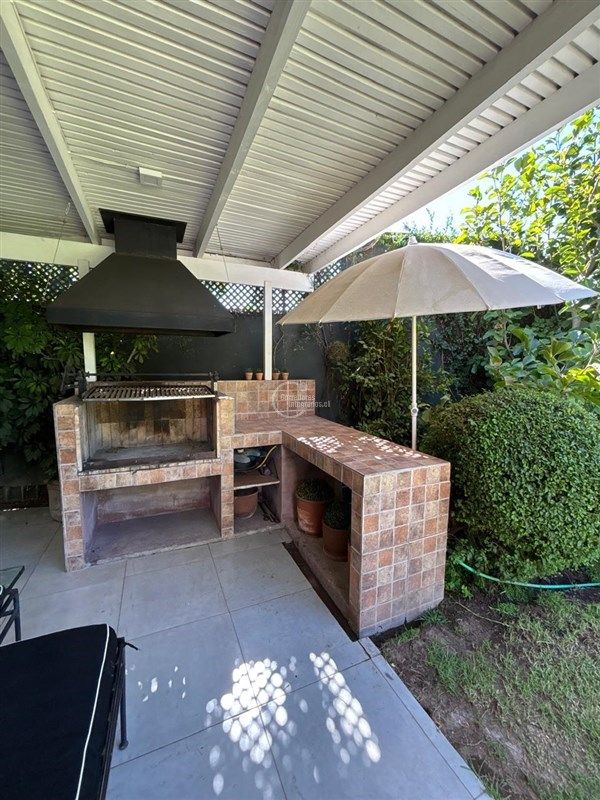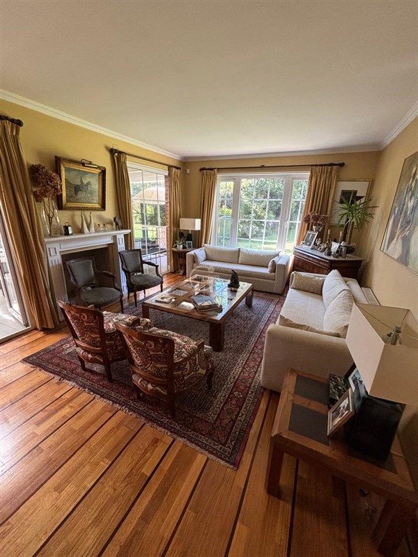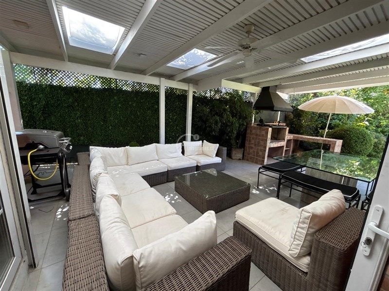 Living y comedor independientes, ambos con salida directa a una terraza techada que integra un quincho en obra y un amplio jardín formado con árboles, flores y piscina con reja de seguridad para niños.