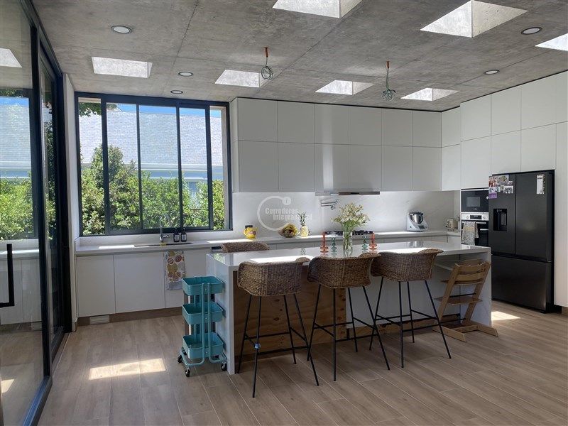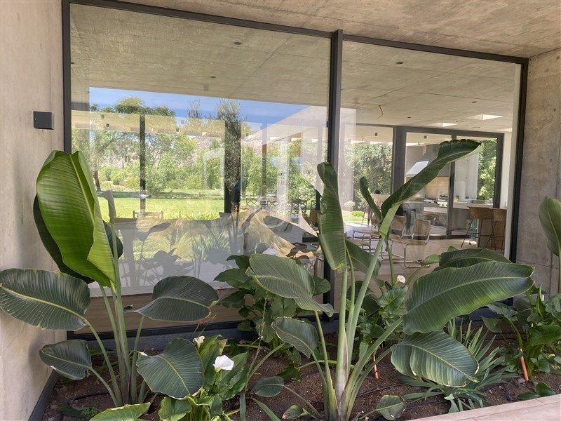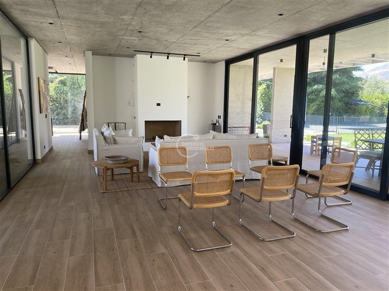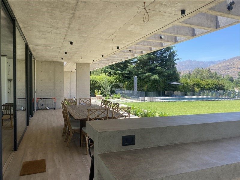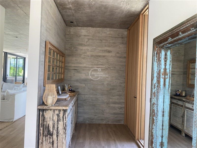 Espaciosa, ventanales de gran altura, permite entrar mucha luz. 480m2 construídos, en un terreno de 1.900m2. Living y comedor con salida a gran terraza, cocina americana, sala de estar, baño de visitas, pieza y baño de servicio, logia con patio y una bodega interna en el primer piso. En el segundo piso 2 dormitorios que comparten un baño, dormitorio principal muy amplio en suite con salida a 2 terrazas.