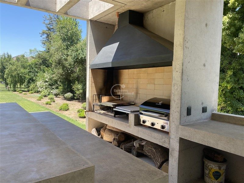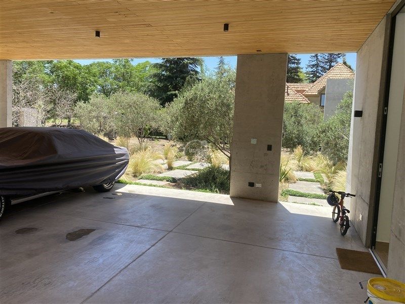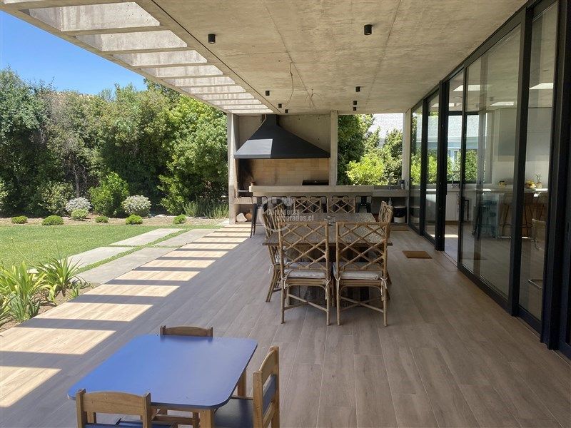 Terraza muy acogedora con quincho, vista a la cancha de golf. Piscina con reja, jardín formado.