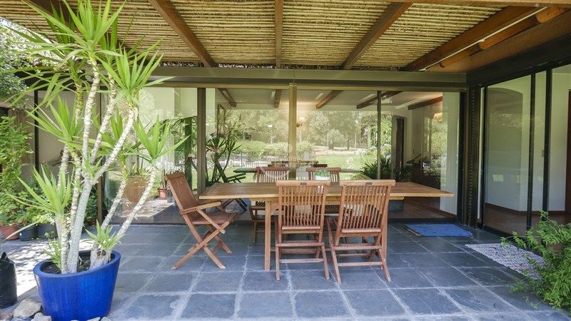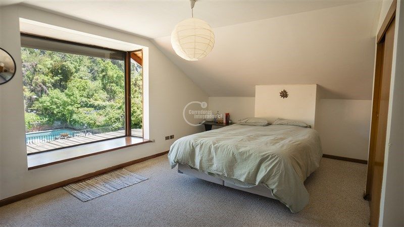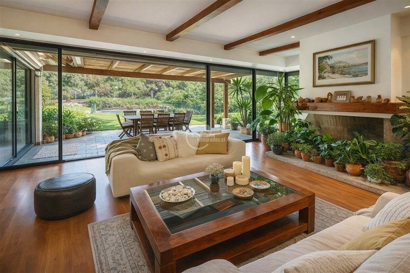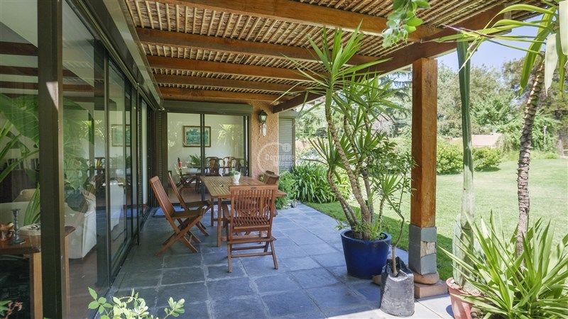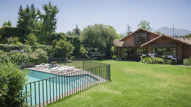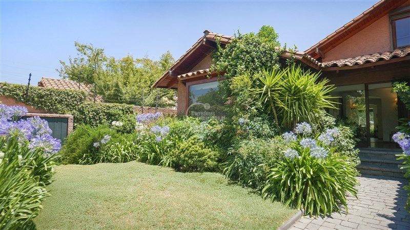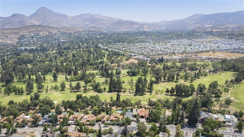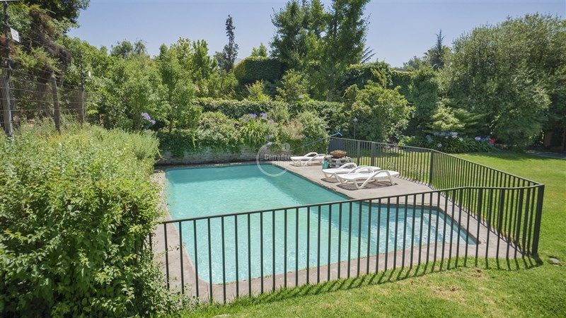 Terraza y jardín muy confortable, vista a cancha de Golf de la Dehesa, (hoyo 18), piscina de buen tamaño con reja. Estacionamiento techado para 2 autos, y con espacio para un tercer auto, cerco eléctrico.