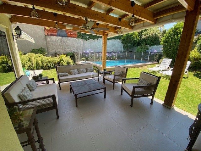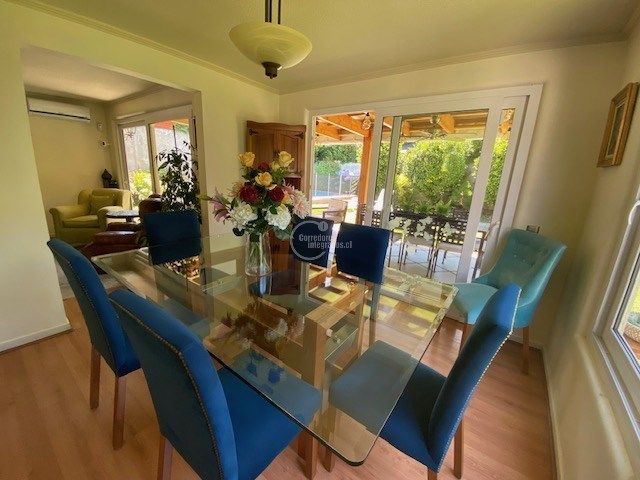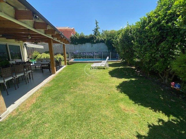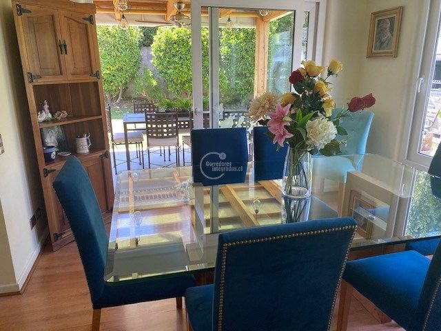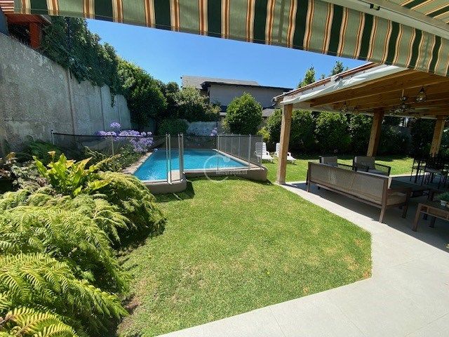 Te presentamos esta impresionante casa en venta en la exclusiva comuna de Lo Barnechea. Con una superficie total de 180 m2 y un terreno de 482 m2 con lindo jardín formado con iluminación con censores día y noche, piscina temperada con calefactor solar, terraza de 20 M2 techada con pino oregón , quincho, toldos retráctil eléctricos, riego automático, sector para juegos, ventanas con termo panel, aire acondicionado en primer y segundo piso.