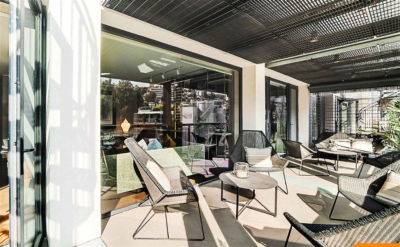 Acceso por terraza con jardinería. Sala de estar, living y tres dormitorios con terraza y acceso a dos baños.